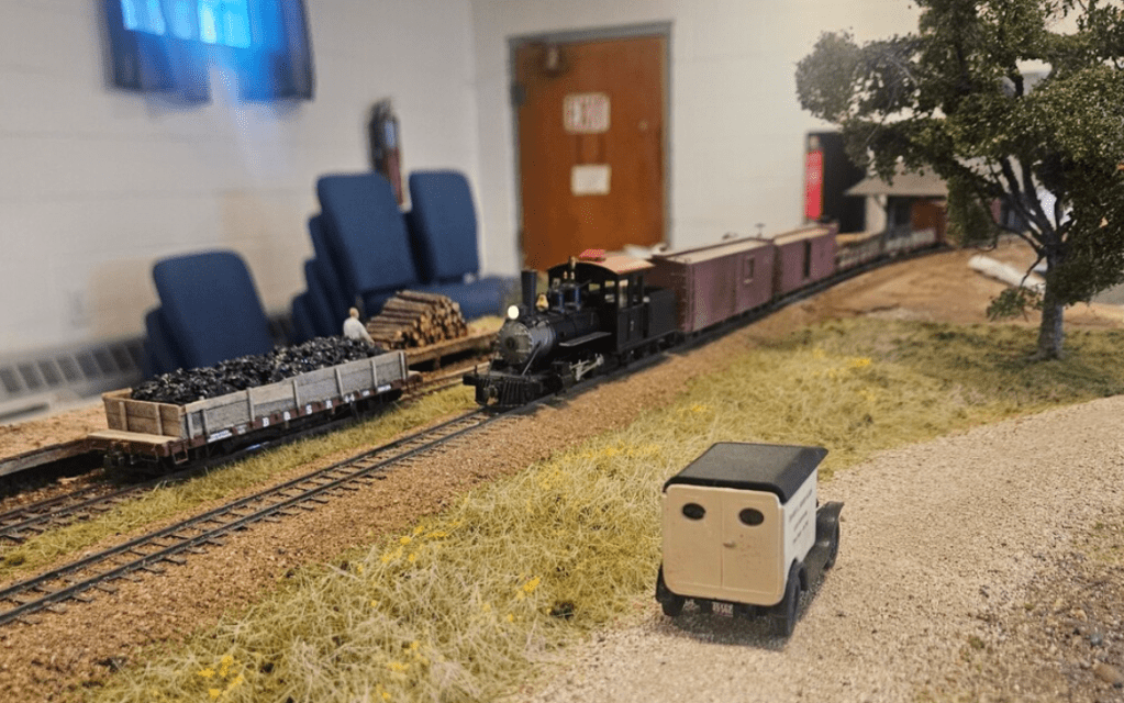 This past Sunday, Al Churella of On2 SR&RL fame came by for a visit. I worked all night to clean up the railroad room sufficiently so that he could see the vision. After 30-40 minutes Al give it a thumbs up (even though I’d not done any work since our last Zoom), and we went to the backyard to enjoy the big trains, Cicadas, and friends…