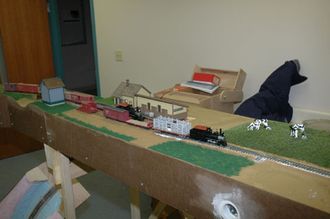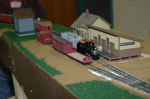 - Damariscotta Station (4’x18″): Lee Rainey’s Damariscotta station module had completed trackwork and structures and basic scenic forms. Full wiring.