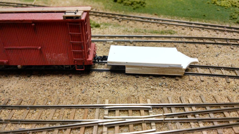On the left is a tab for sliding under cars to verify that the body of a car is at the proper height. At right, a KD-714 HOn3 coupler has been added.