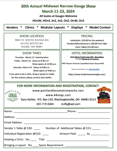 Gary Kohler is hosting the 30th Annual Midwest Narrow Gauge Show in Greenford, OH on March 21-23 20224.