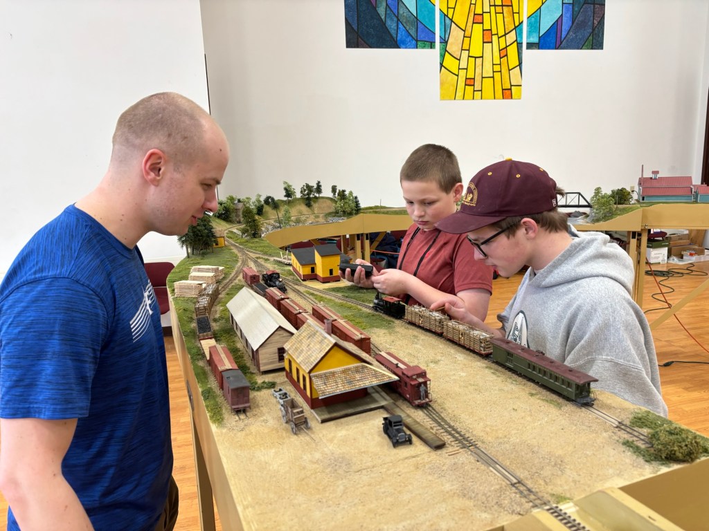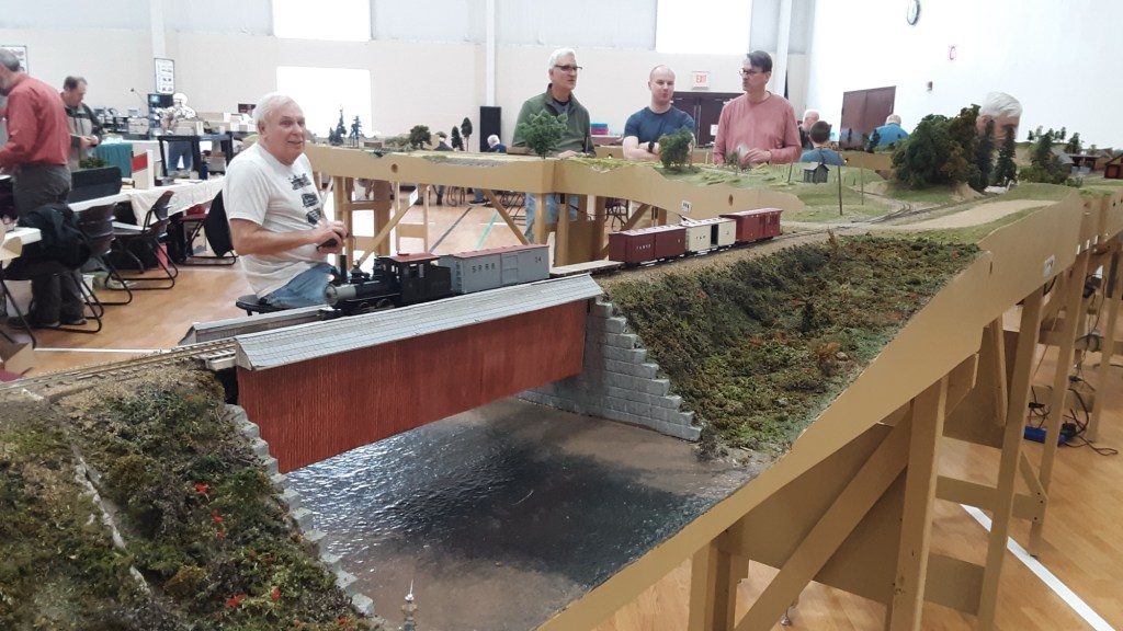 The Maine Sn2 Modelers set up 85’ of module in a Y configuration. We operated it as two branches.