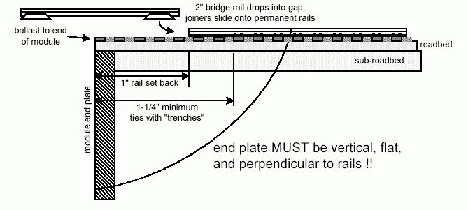 S2.4 Roadbed shall be 1/4″ high laid directly on top of the end plate and adequately supported throughout the rest of the module (to avoid sagging or flexing)